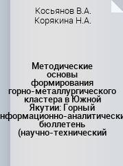 Методические основы формирования горно-металлургического кластера в Южной Якутии: Горный информационно-аналитический бюллетень (научно-технический журнал)...